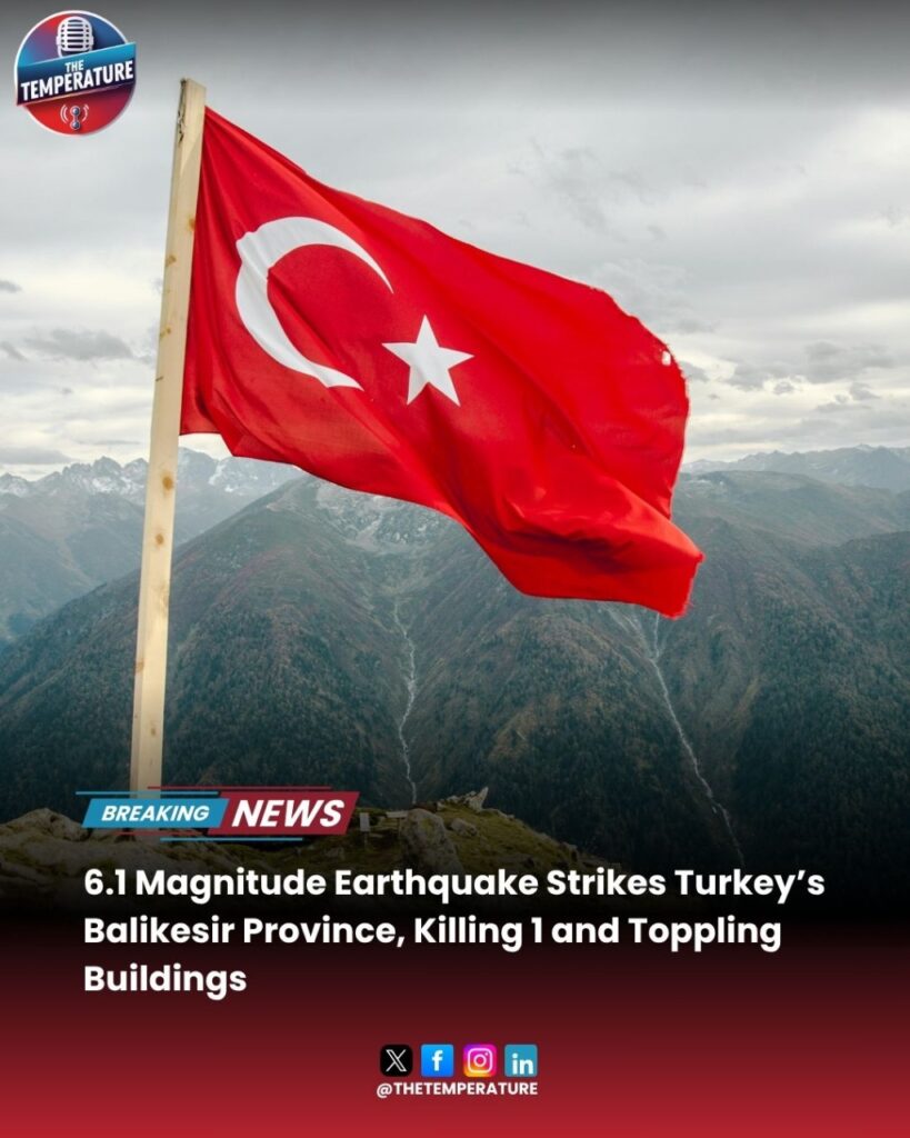 A powerful 6.1 magnitude earthquake hit Turkey’s northwestern Balikesir province on Sunday, killing one person and injuring at least 29 others. The quake, centered in Sindirgi, caused 16 buildings and two mosque minarets to collapse, with tremors felt as far as Istanbul. Rescue teams pulled survivors from the rubble, while President Recep Tayyip Erdogan expressed condolences and called for national resilience. Turkey, located on major fault lines, remains vulnerable to frequent and sometimes devastating earthquakes.