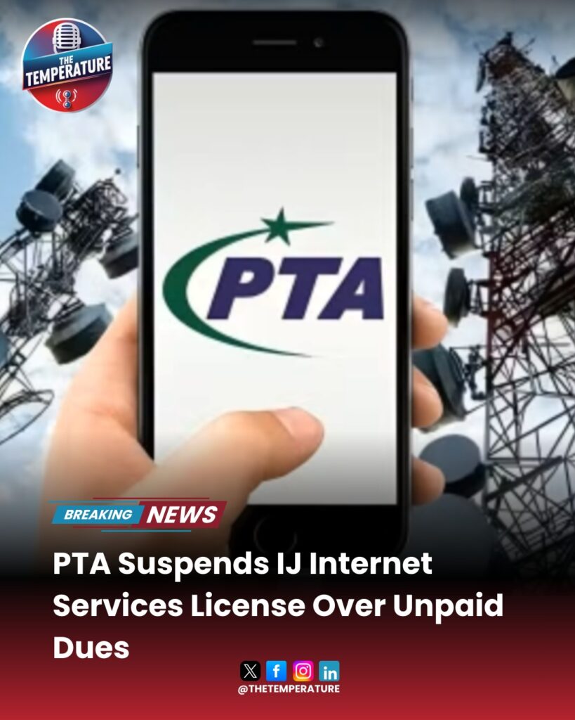 The Pakistan Telecommunication Authority (PTA) has suspended the license of IJ Internet Services (Pvt) Ltd for one month or until it clears outstanding dues. The action, taken under Section 23 of the Pakistan Telecommunication (Re-organization) Act, 1996, comes after the company failed to pay its Annual License Fee (ALF) for FY ending June 30, 2022, plus Late Payment Additional Fee (LPAF).